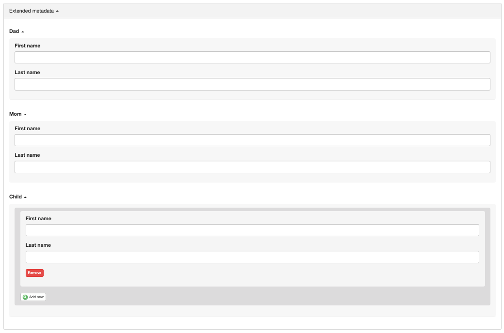 # Define the extended metadata type 'family', which contains the nested extended metadata attributes